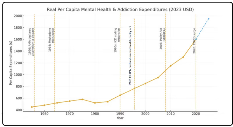 Mental health parity laws, as I discussed in The Hidden Cost of Mental Health Parity, did more than equalize coverage between mental and physical illness. Historically, insurance reimbursed conditions that could be directly verified through pathology, imaging, laboratory findings, or clear physiological impairment. Parity laws opened the door to covering conditions defined largely through behavioral criteria, clinical interpretation, and subjective reporting. What began as a humane effort to expand treatment also created a system in which diagnoses that lack clear biological markers became reimbursable, billable, and in many cases lifelong.
