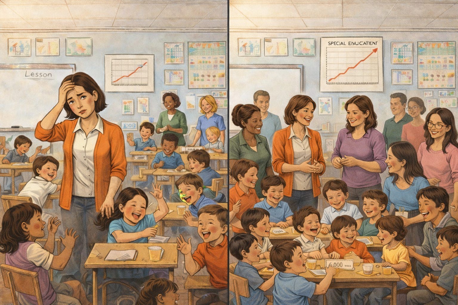 The administrative and labor consequences are visible throughout the state. Teachers unions increasingly describe special education caseloads as unsustainable and have demanded additional hiring and resources. During San Diego’s 2026 labor dispute, union leaders cited rising special education obligations as a major driver of staffing demands. When classification rates climb faster than enrollment, the result is pressure to expand staffing, programs, and budgets in order to maintain compliance with federal and state mandates.