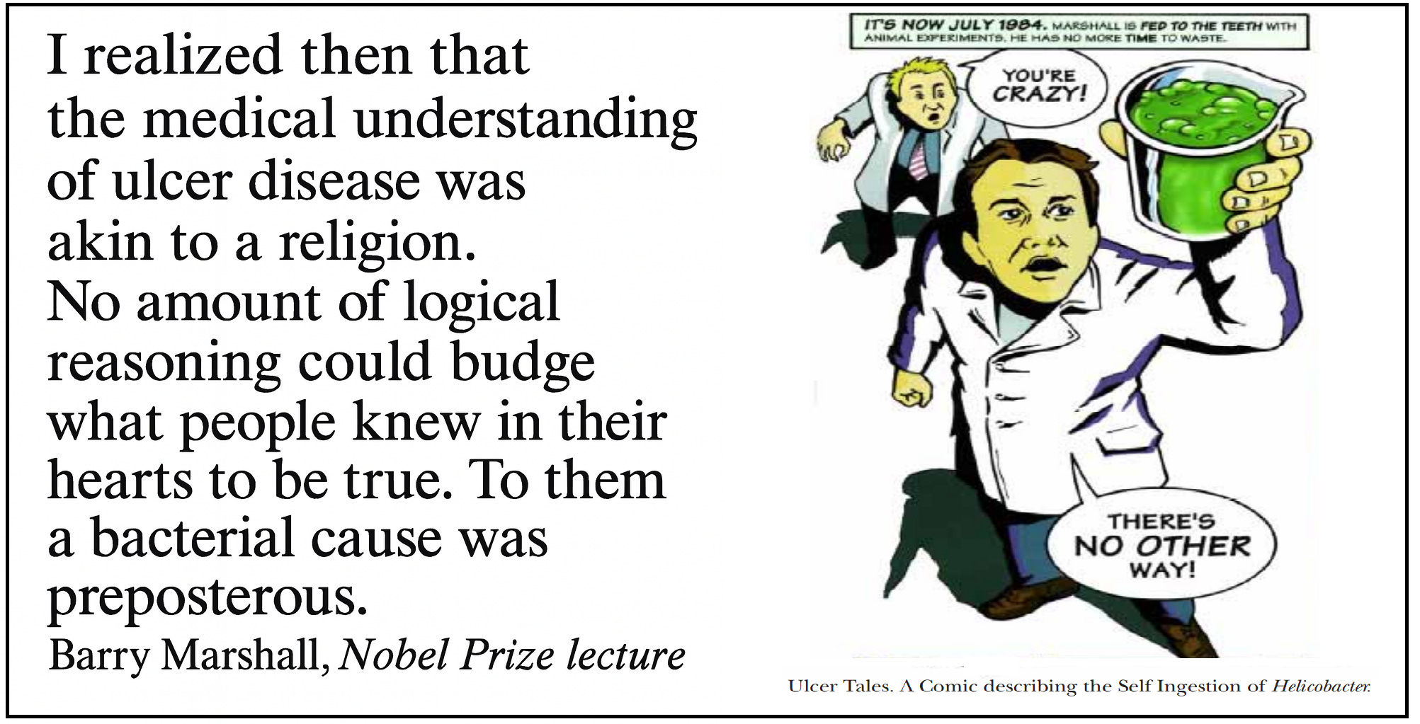 Barry Marshall and Robin Warren were told repeatedly that ulcers were caused by stress and personality. Reviewers downgraded his bacterial theory (1983). Ultimately in 1985, Marshall found an editor willing to “stick his neck out very far to publish”.The ‘amyloid mafia’ within Alzheimer’s research (1990s–2024)