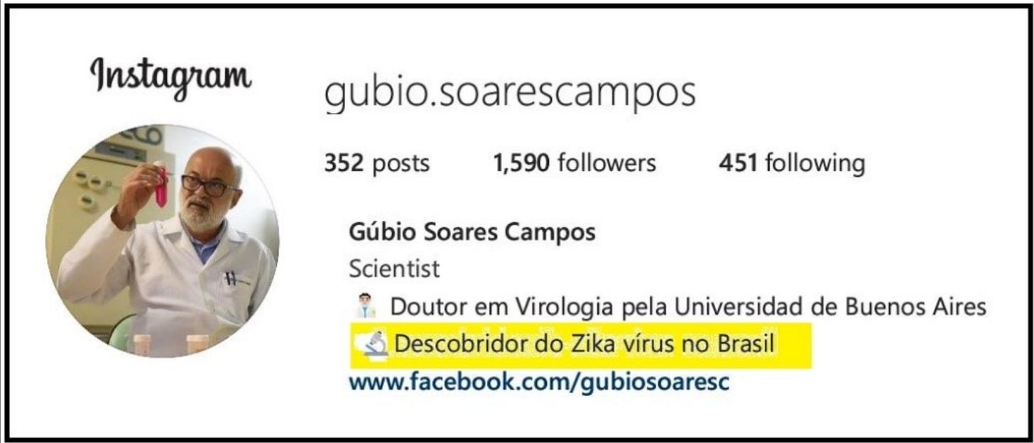 Brazil’s 2015 microcephaly “epidemic” was not a hoax, but a manmade fiasco-- born from a mix of overdiagnosis, media amplification, and premature conclusions. In April 2015, Gubio Soares Campos and his wife Silvia Sardi announced the detection of Zika in Brazil, bypassing peer review and scientific protocols. Their leak-to-the-press-first approach thrust ZIKV into public awareness as a novel threat-- despite its clinical profile resembling a mild dengue with no treatment beyond rest and Tylenol. Campos later relocated to Buenos Aires and still brands himself online as the “discoverer of Zika in Brazil”-- a reputation built more on spectacle than science.